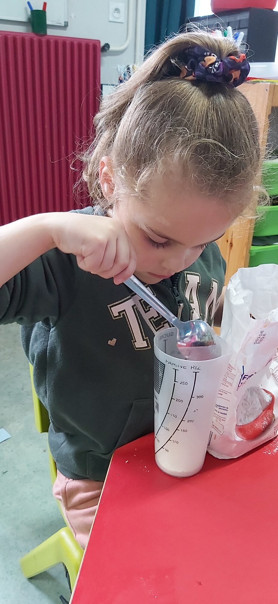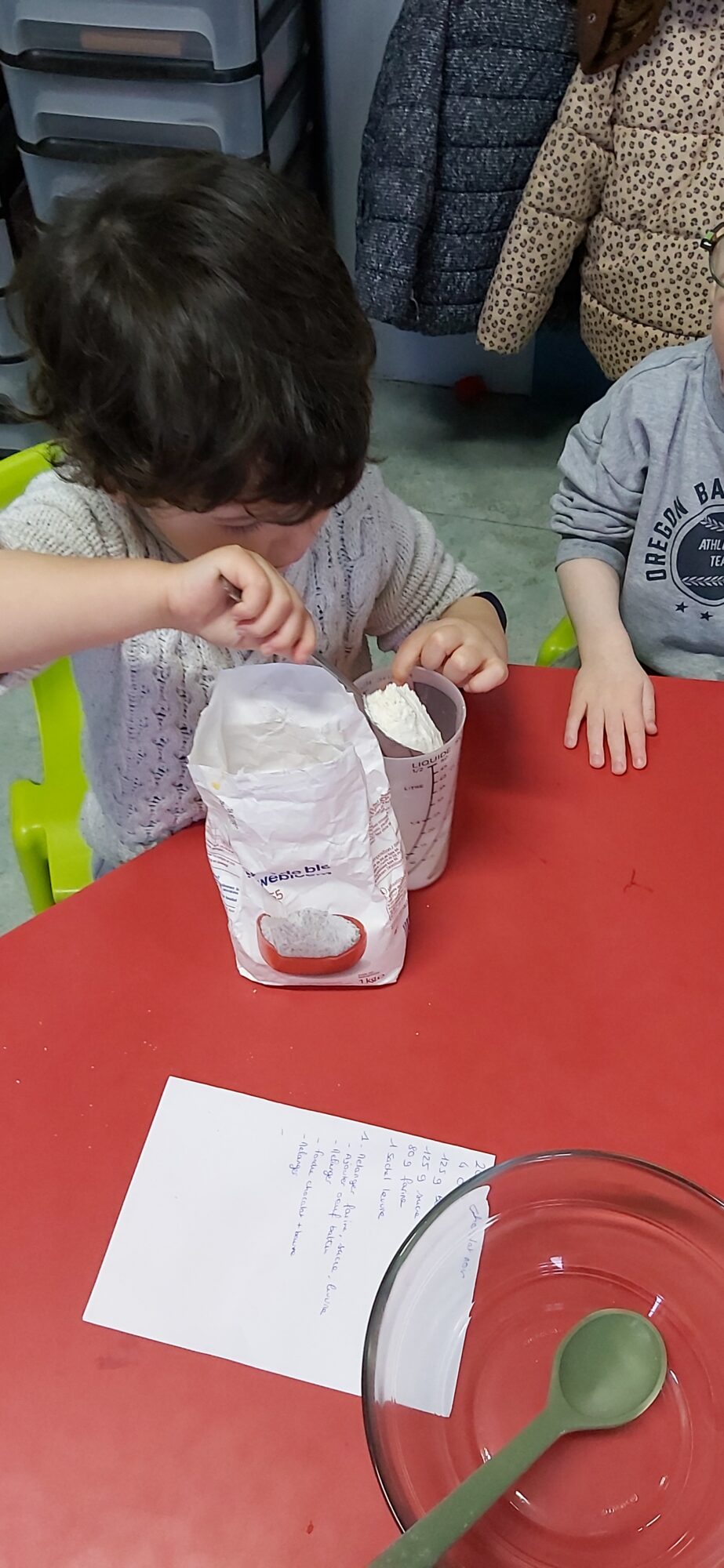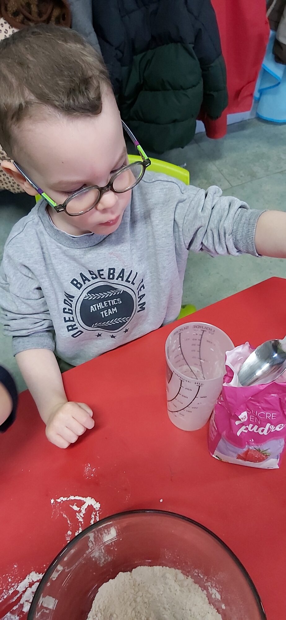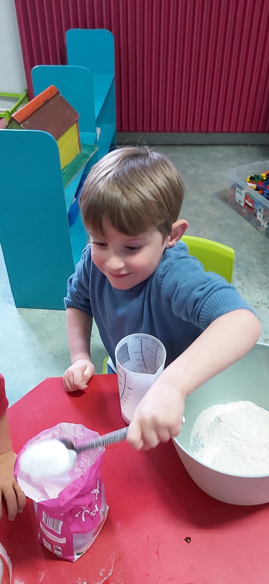 C’est l’occasion pour les enfants de découvrir les mélanges, les mesures, de travailler les quantités, la motricité fine. Atelier riche en apprentissages et très appréciés des enfants. Ils sont très fiers de déguster le fruit de leur travail !