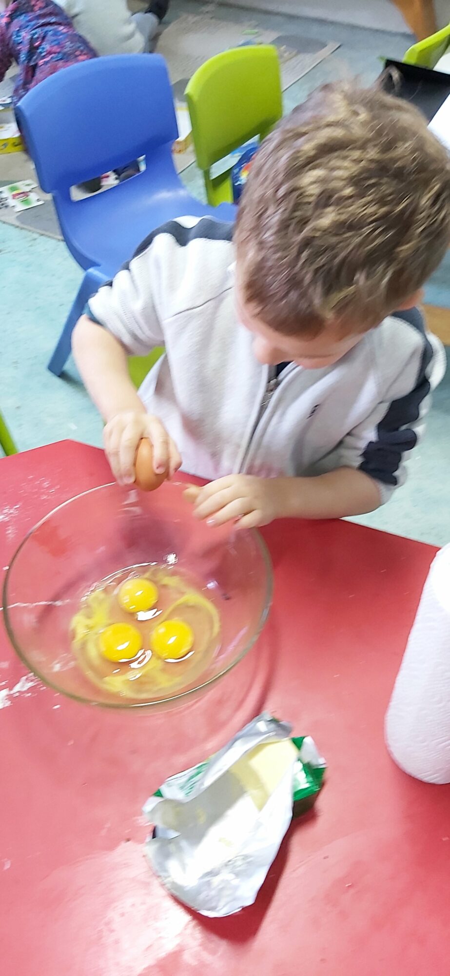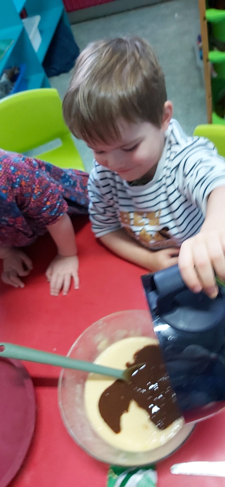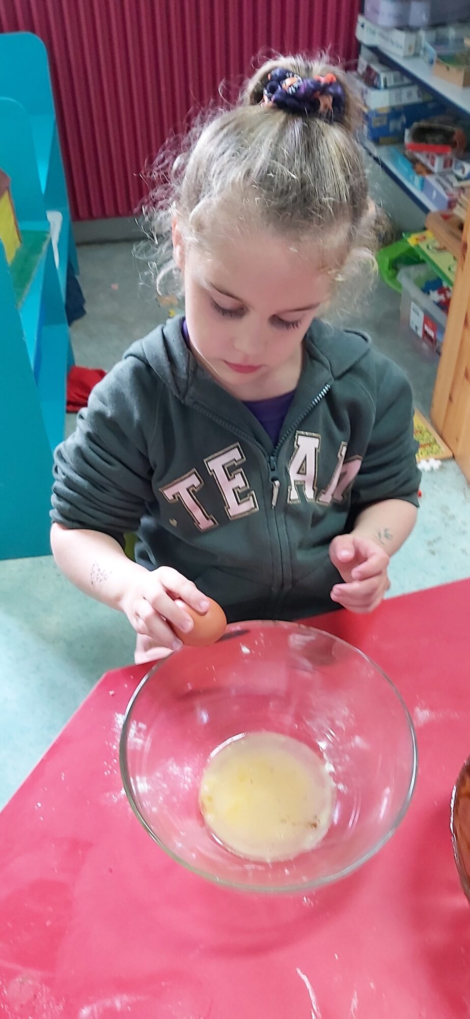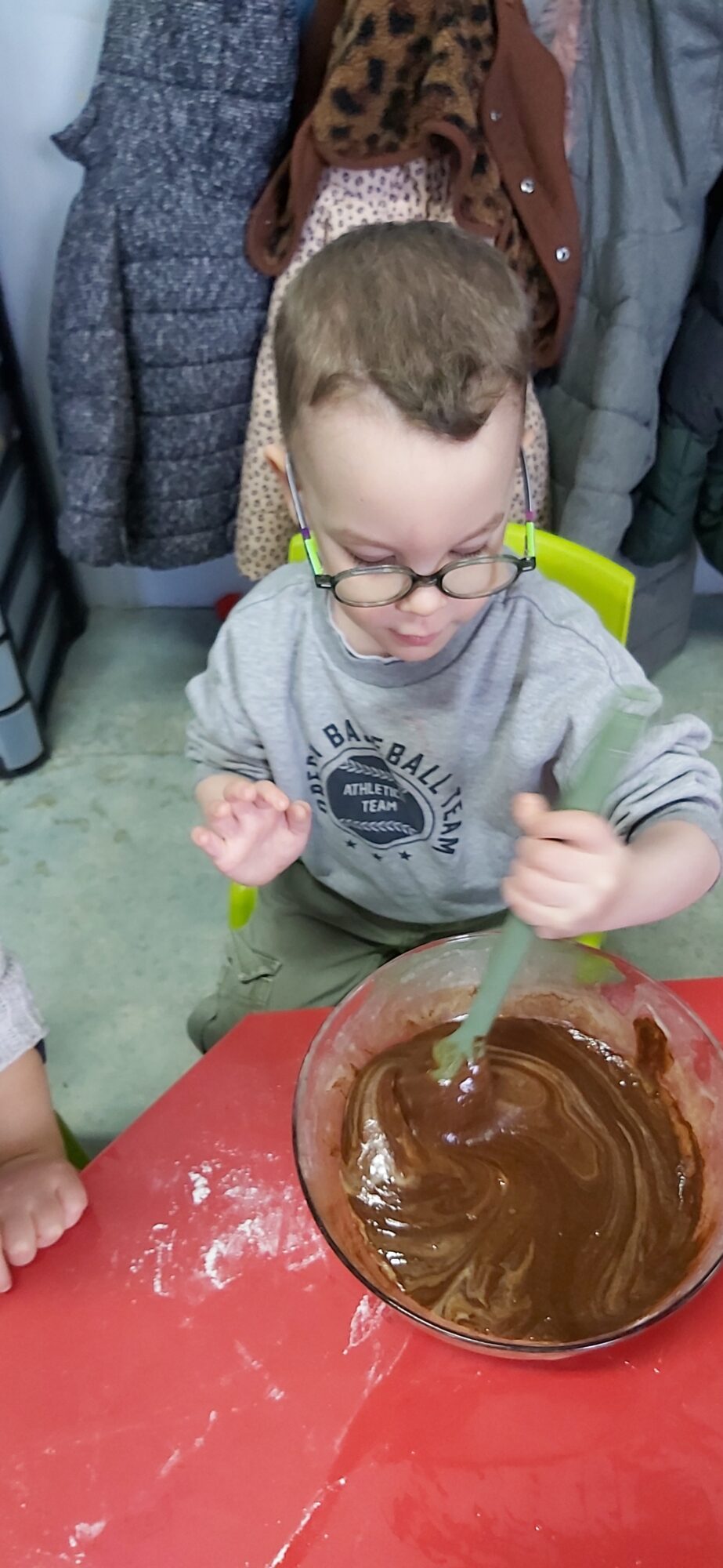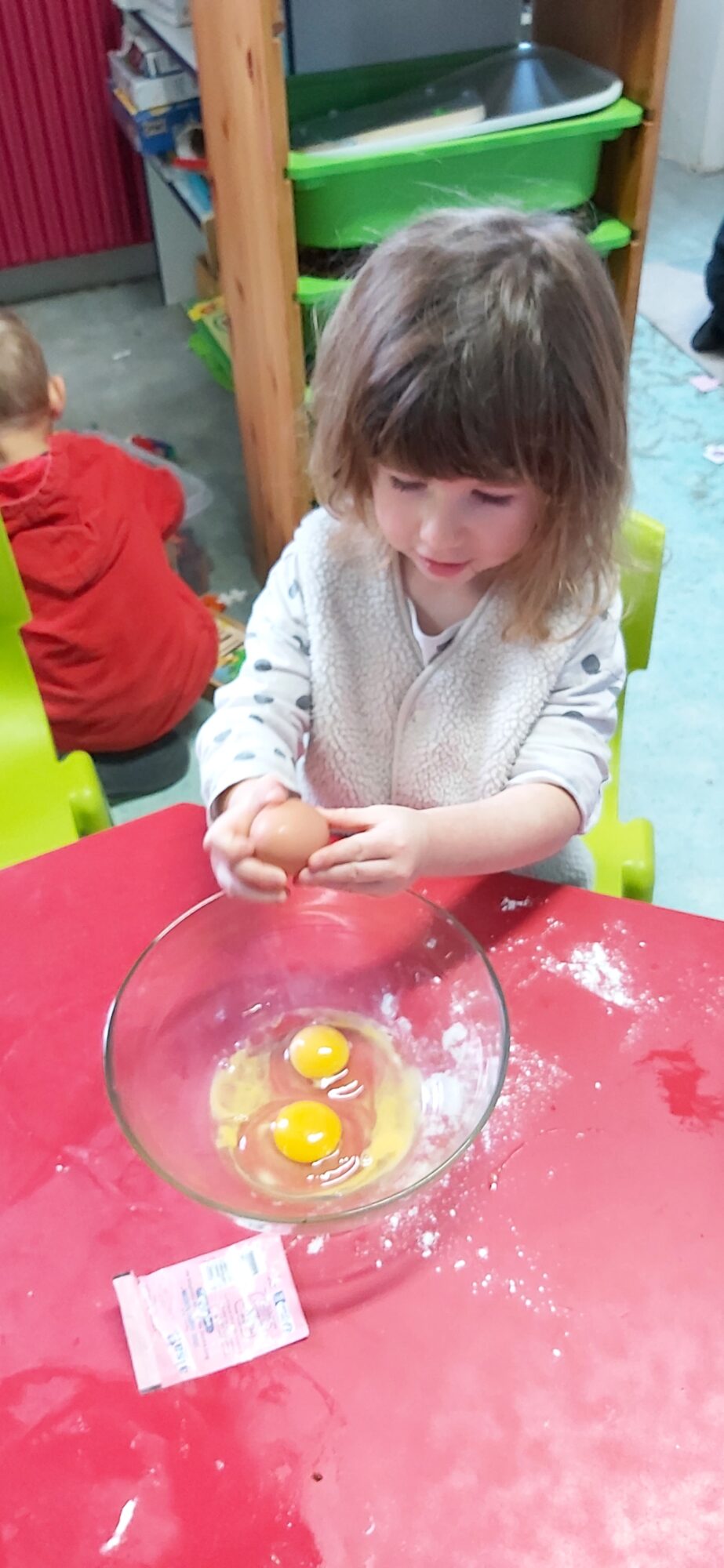 C’est l’occasion pour les enfants de découvrir les mélanges, les mesures, de travailler les quantités, la motricité fine. Atelier riche en apprentissages et très appréciés des enfants. Ils sont très fiers de déguster le fruit de leur travail !