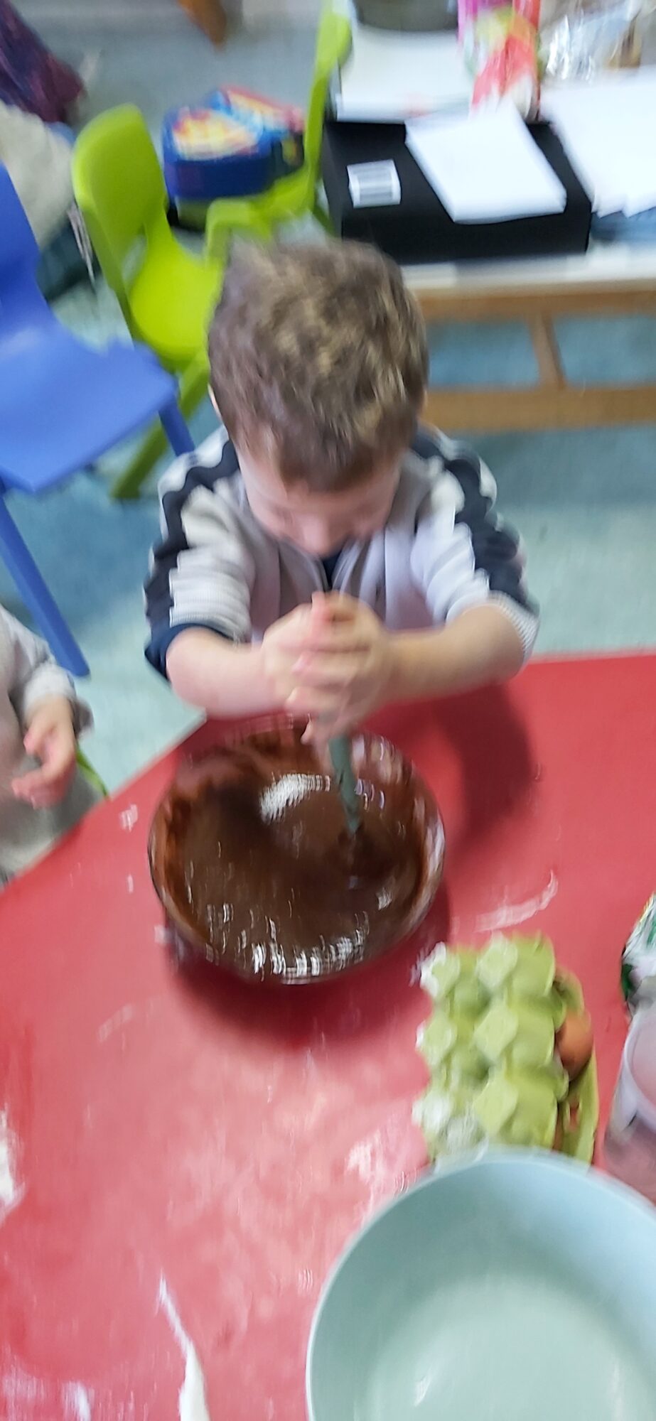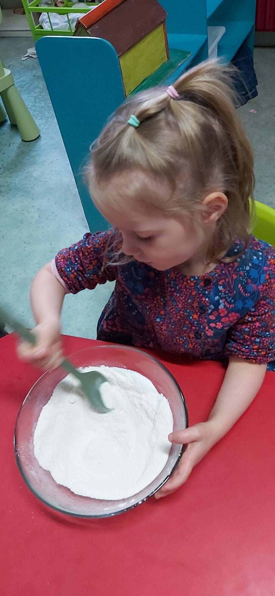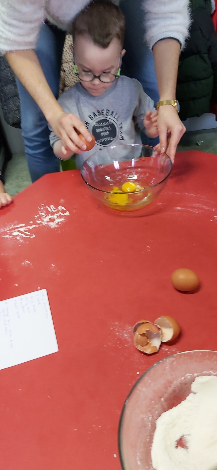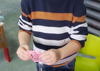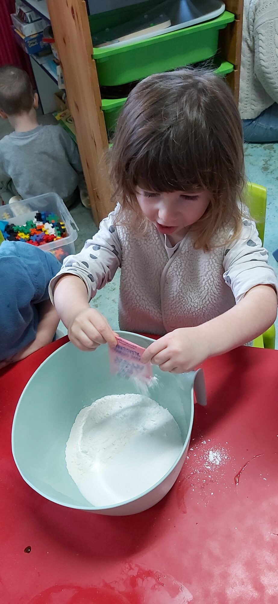C’est l’occasion pour les enfants de découvrir les mélanges, les mesures, de travailler les quantités, la motricité fine. Atelier riche en apprentissages et très appréciés des enfants. Ils sont très fiers de déguster le fruit de leur travail !